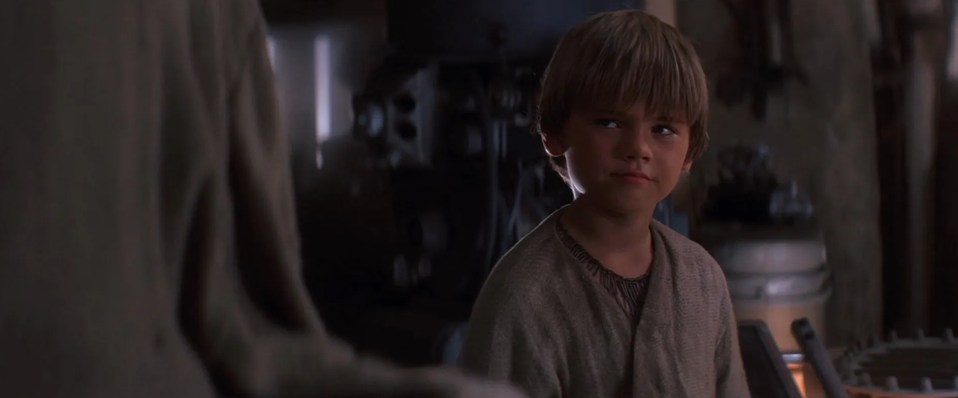 Mar. 24th, 2022 09:24 amSo we watch Qui-Gon bargain with Watto, subtly maneuvering him into an agreement. Note that Anakin has very few lines in this scene (just a defense for how the last pod got destroyed, I actually saved the pod *adorable little gulp*...mostly) but he is a vital part of this exchange. He's frequently positioned right in between Qui-Gon and Watto, a clear symbol of his metaphorical position. And Qui-Gon exchanges a lot of silent looks with him as if they share a private secret.