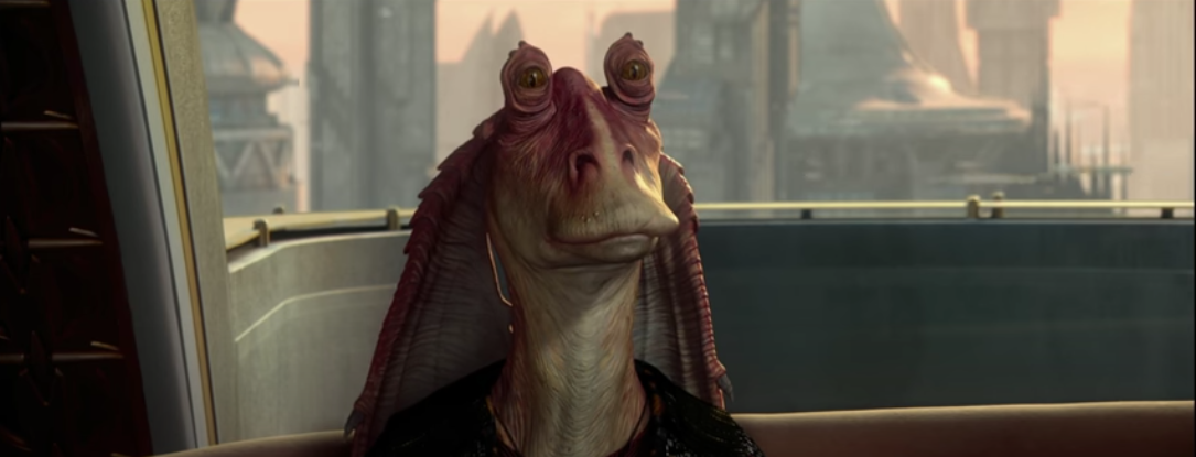 I love how Jar Jar visibly gulps from the tension.