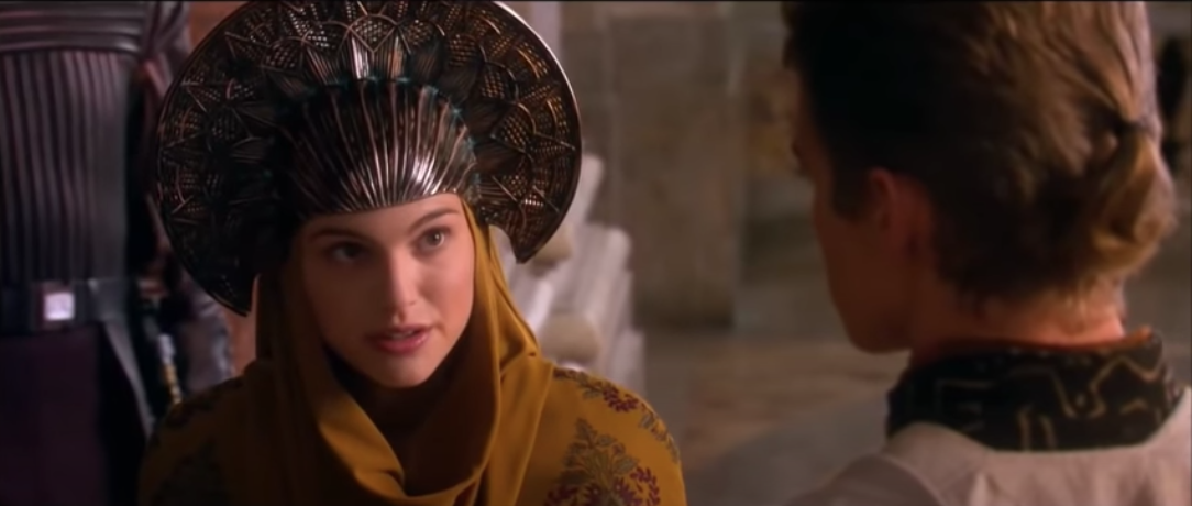Padmé's not backing down. This is her terrain, and she's not relinquishing it. Notice how the positioning of the camera minimizes their considerable height difference.