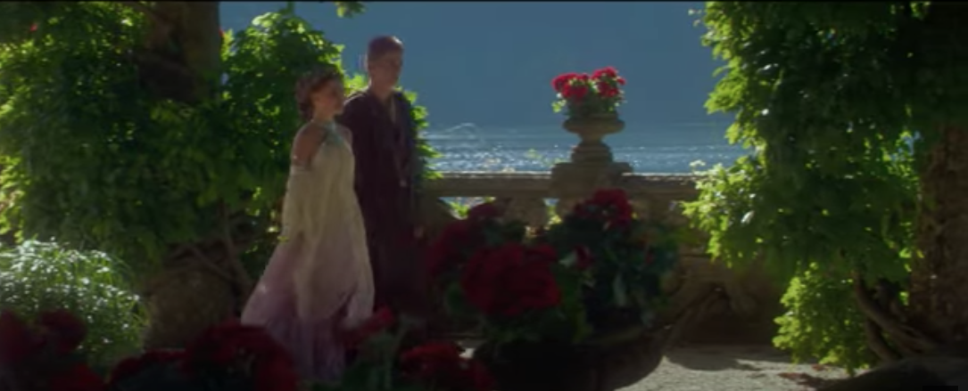 Why water, like Kamino? Because water is the origin of all life, and both plotlines are about birth. The artificial birth of clones and the dawn of the Empire's army contrasted with the natural birth of Padmé and Anakin's romance, ultimately leading to the birth of their twins. These two events are entwined because Luke and Leia's fate will be inextricably entwined with the fate of the galaxy. The waters of Kamino are dark and troubled; Naboo is serene. But don't get too comfortable, because the romance will (obviously) not be free from troubles. This beginning, however, is sweet and peaceful.