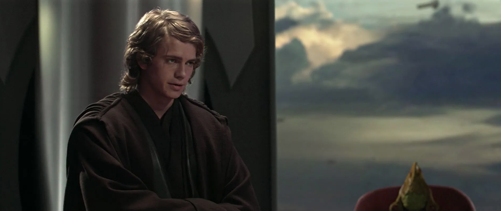 Mind you, this all starts before Anakin's prolonged complaint, the much-memed "how can you be on the Council and not be a Master?" rant. By the time he really gets going, we're all squirming in our seats, even though no one on the Council is even saying or actively doing anything. Just sharing severe glances. That's all we need to know that things are very, very uncomfortable. Exactly as Palpatine planned.