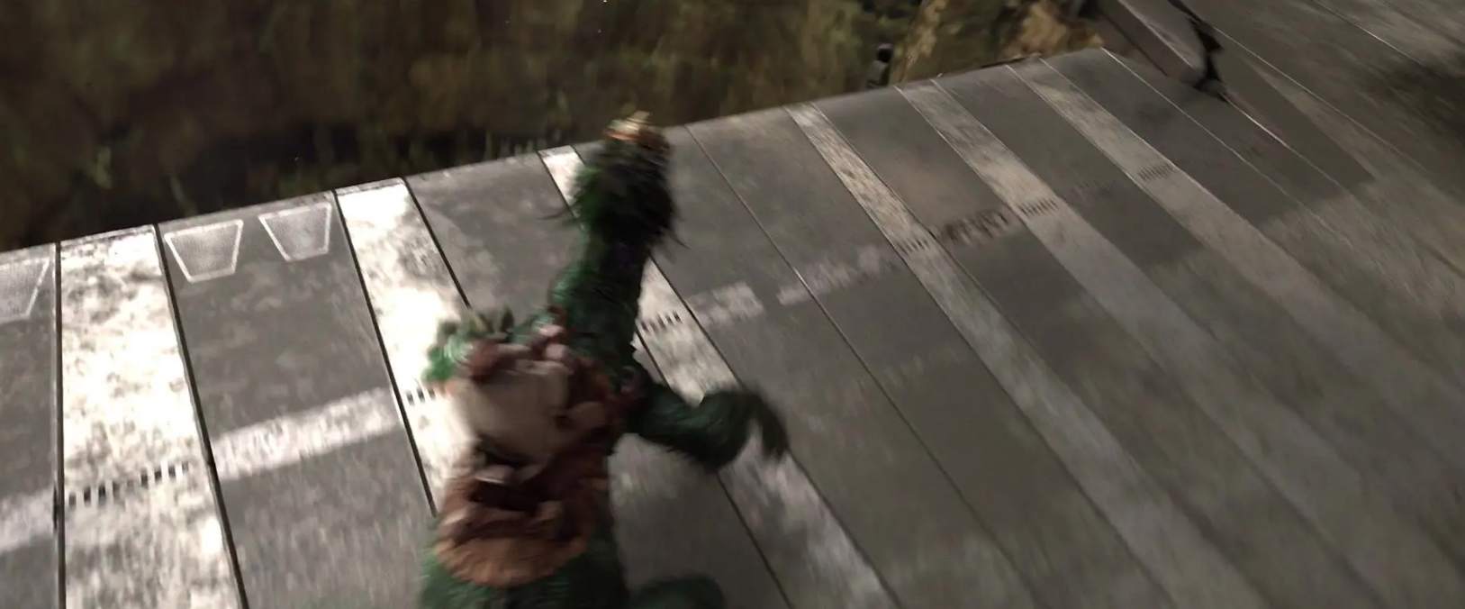 It happens so fast I could only get a blurry shot, but look at him crawling around on all his limbs like an insectoid. Eww.